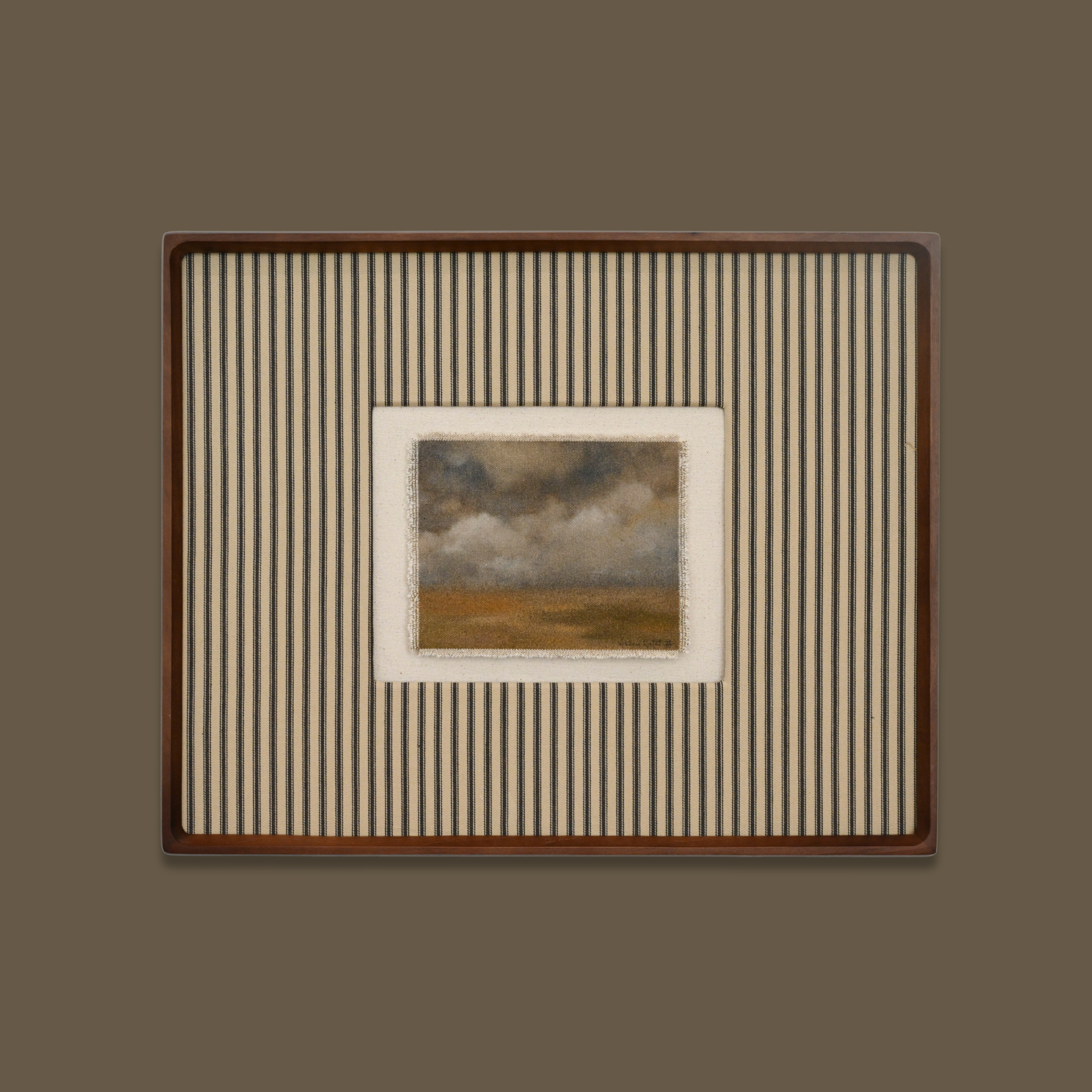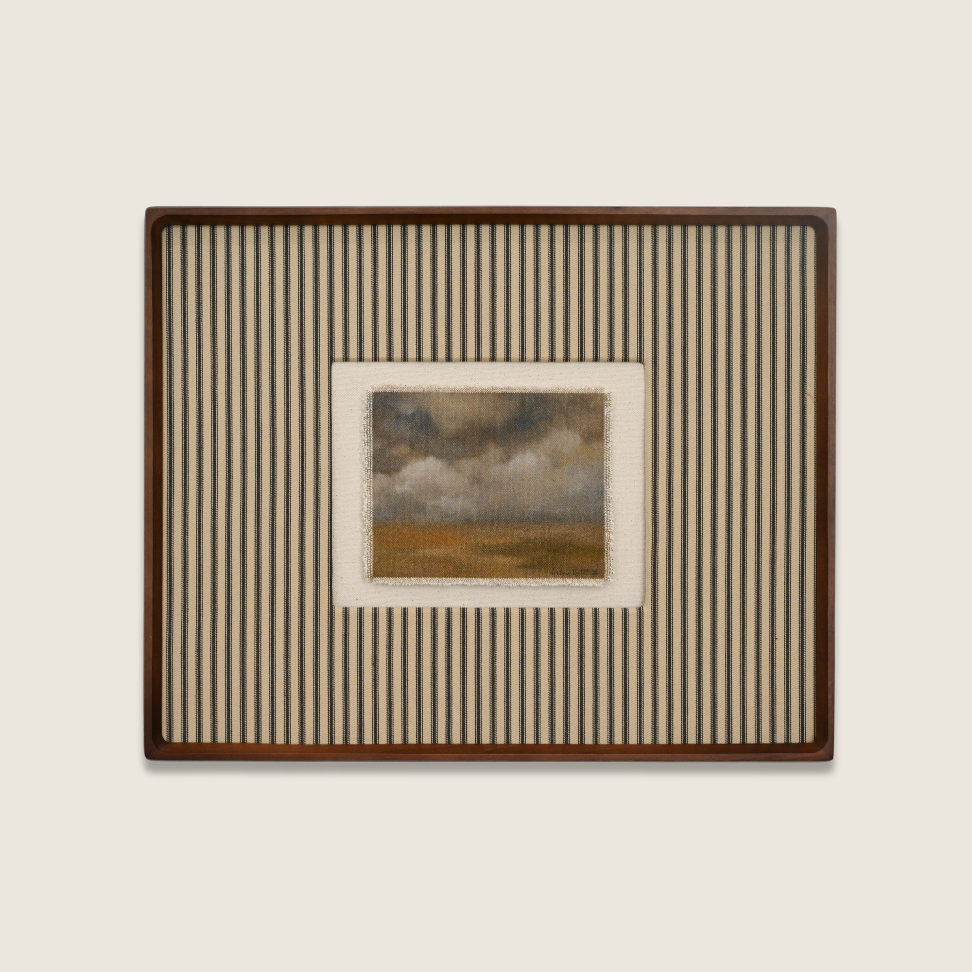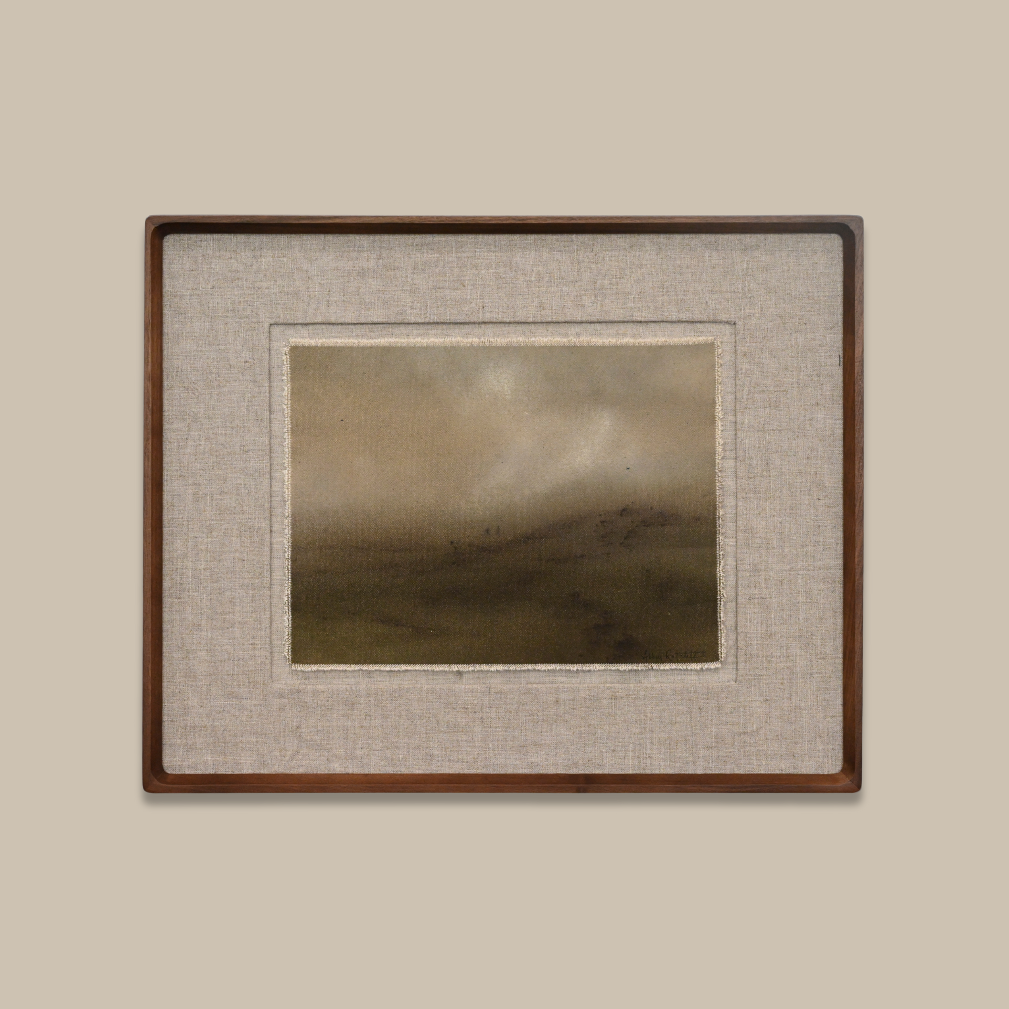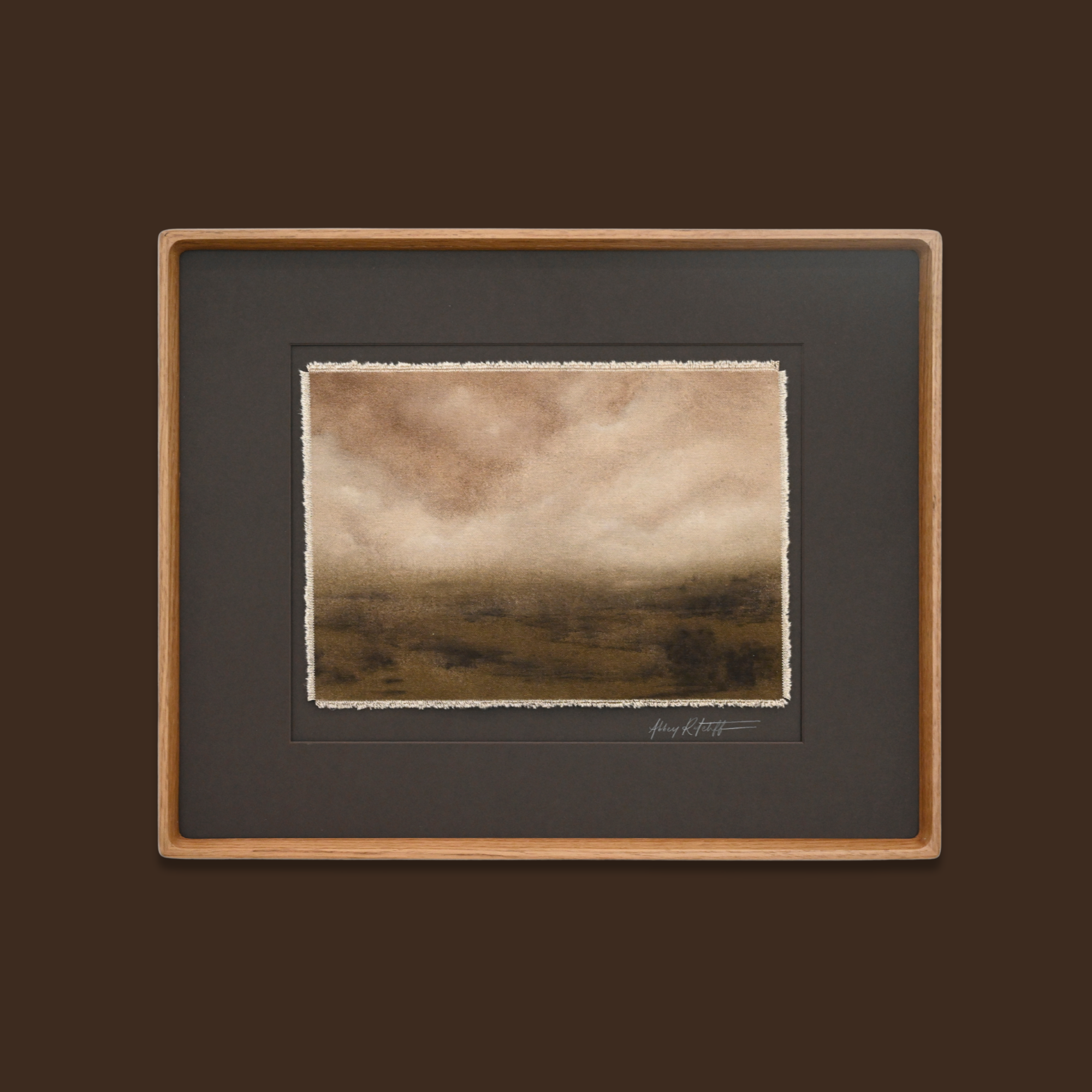 Amid, Amidst, Among captures the quiet majesty of the natural world through layered washes of high-flow acrylics, charcoal, water-soluble graphite, & oil pastels on raw canvas. The muted tones and organic textures will bring a sense of serenity to the home in which it will reside.